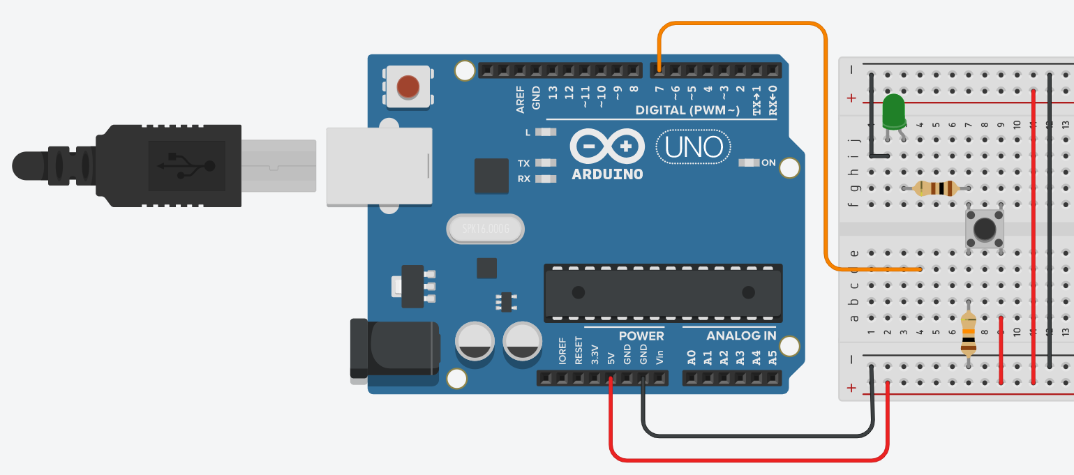 풀다운 저항을 이용해 스위치를 눌렀을 때 HIGH(1)을 출력하여 LED를 점멸시키는 회로도입니다.
