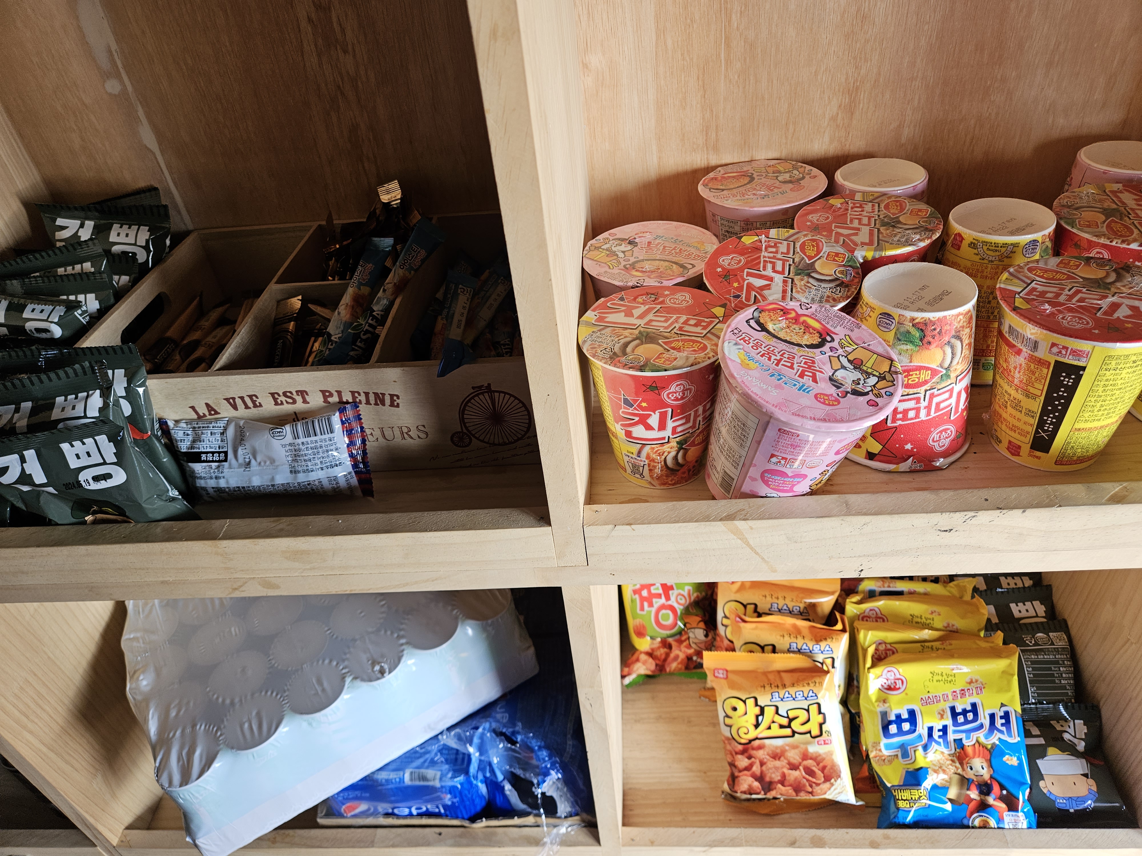 출항준비~ 3시30분에 출항이며 전에 출조사무실에서 확인하고 채비를 구입하거나 장비를 대여할 수있었다. 한치 배는 시설이 모두 비슷한 것 같다. 화장실, 수면실?, 간식코너, 2로드거치대, 얼음은 출항 전에 담을 수 있다.