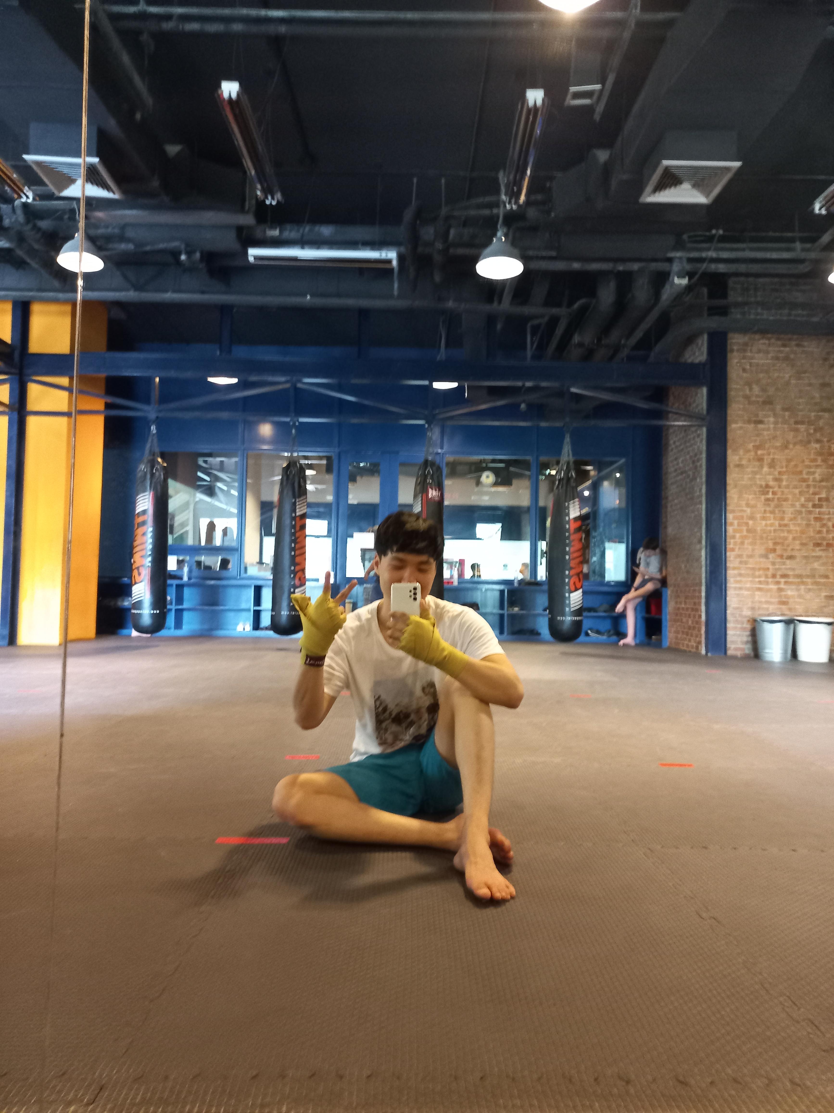 제일 기억에 남았던게 샌드백을 치는게 생각보다 아팠고 특히 킥을 할 떄는 힘들기보다 아파서 그만하고싶었다ㅋㅋ. 또 연계로 강사님과 합을마추어 펀치와 킥을하는데 이게 생각보다 너무 힘들었다. 3분은커녕 1분도 안되서 지치는 것 같았다. 그리고 끝나면 윗몸일으키기를 15하고 쉬는데, 내려갈 때마다 강사님이 내 배를 쳤다ㅋㅋㅋㅋ. 다른 초급생들은 하지 않던데 나만 쳤다. 잘하고 있다고 인정받는것 같아 기분이 좋으면서도, 왜 나만..... 그래서인지 두번째 라운드부터는 더 쌔게 치고싶어졌던 것 같다ㅋㅋㅋㅋ
