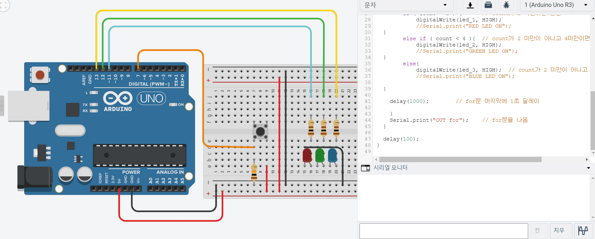 digitalWrite(led_3, HIGH); // count가 2 미만이 아니고 4미만도 아니면 실행