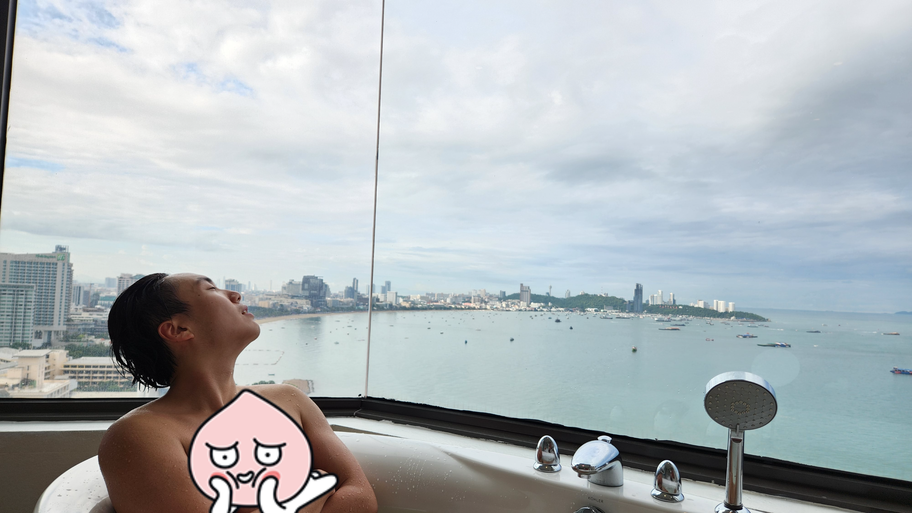 룸 종류가 다양한데 오션뷰 중에서도 무슨 특별한 룸으로 선택했다. 그 룸의 특징은 화장실이 통유리로 되어있어 엄청난 개방감을 느낄 수 있었다는 것이다. 가격은 몇만원 더 비쌌지만 선택했다. 다른 일반 오션뷰룸은 가보지 못했지만 나극 그 가치가 충분히 있다고 생각한다.