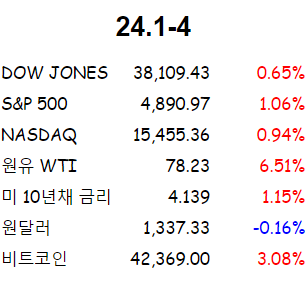 미국 작년 4분기 경제성장률이 3.3%상승으로 예상2.0%보다 크게 높음 수치. 이에 pce 근원 개인소비지출도 약 2년만에 2%대 돌입. cpi는 예상보다 살짝 높은 3.4%를 기록. 금리 인하 기대감은 이 같은 데이터를 근거로 수시로 변하는 중.