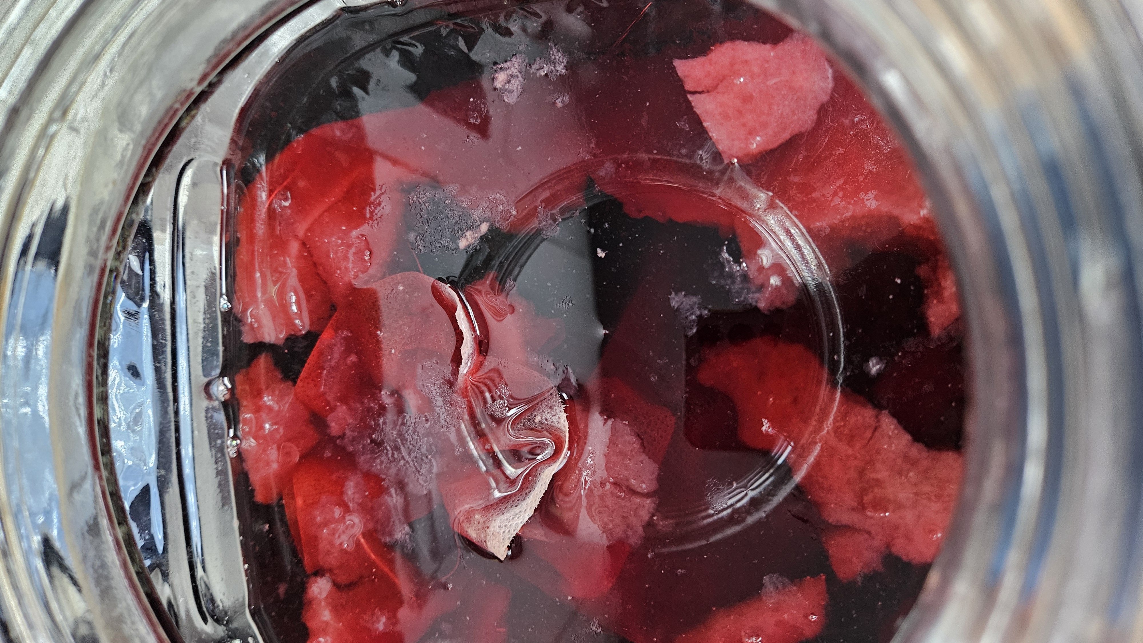 4일동안 복분자를 숙성해주었다. 복분자 물이 많이 나왔다. 한번씩 숟가락으로 복분자를 으깨주면서 휘적휘적해주었다.
