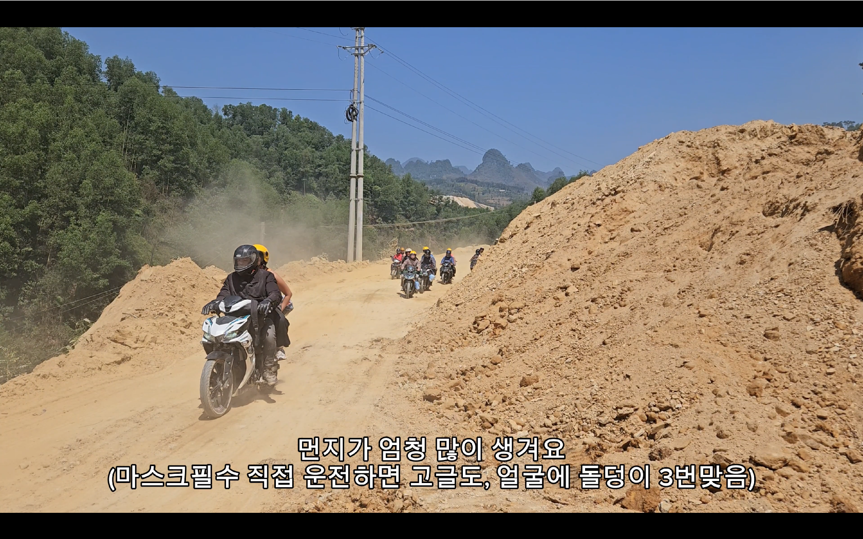 그리고 난 운전하면서 얼굴에 돌을 3번정도 맞았다. 만약 눈에 맞았으면 큰일나겠다 싶었다. 고글이나 헬맷을 끼는게 좋을것같다.