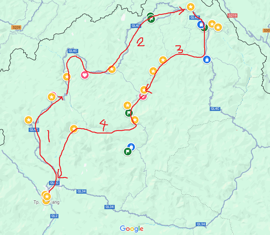 코스는 2박3일 혹은 3박4일 코스가 있었다. 난 3박4일로 여유롭게 돌아볼 생각이었는데 결과적으로 2박 3일만에 다시 하장 시내로 돌아왔다. 카메라도 잃어버리고 가다보니 하루에 꽤 많은 거리를 이동하게되었고, 오토바이 장시간 운전이 생각보다 고단하여 후다닥? 끝낸 느낌이 없지않아 있는 느낌이었다.