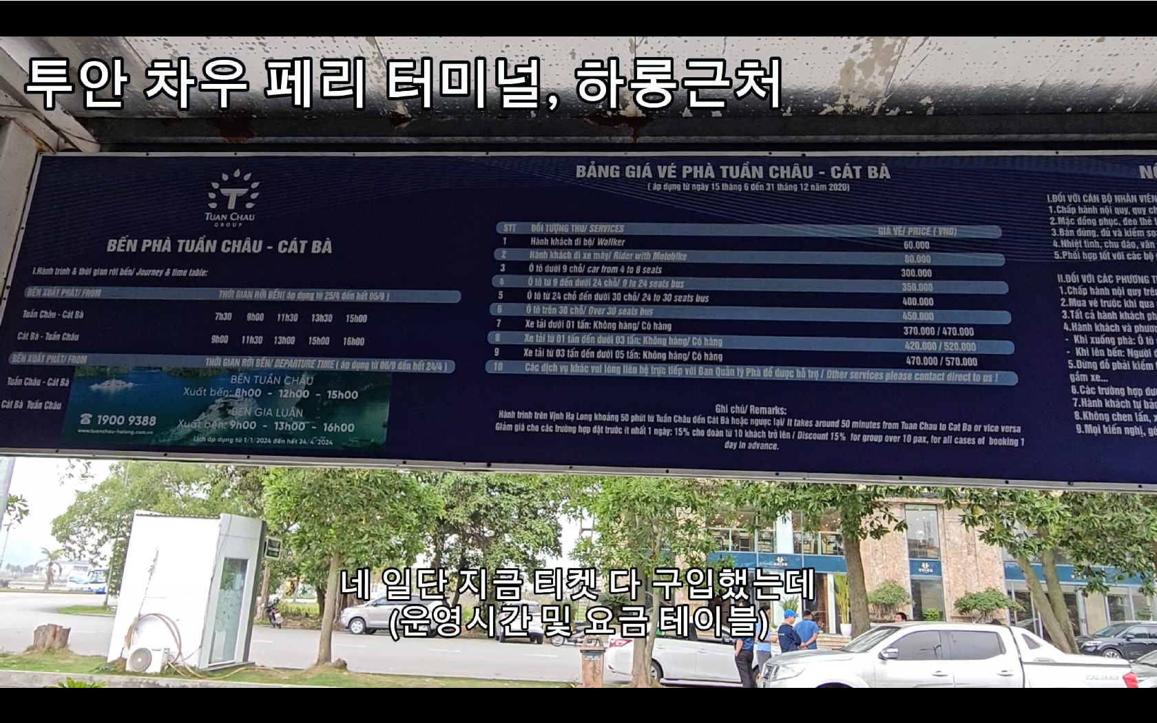 난 배타고 깟바 아일랜드 도착 후 버스타고 시내까지 이동하기로했다. 배 값 6만동 3000원. 버스 값 5만동 2500원. 총 5500원이다. 너무 저렴한거 아닌가?ㅋㅋㅋㅋ 이외에도 오토바이나 자동차를 끌고 배에 탑승할 수 있다. 가격은 이미지를 참고. 선착장에서 간식이나 음식을 먹을 수 있다. 난 조금 걸어서 식당가서 반미를 먹었다. 일반적이지않게 고기랑 오이만 들어간 반미였다ㅋㅋㅋㅋ 근데 맛있었다.