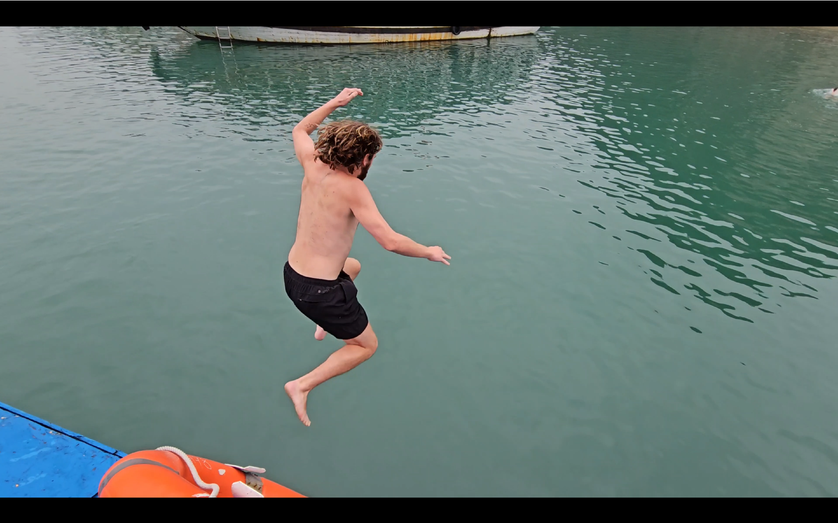 이동중에 멈추더니 이곳에서 수영을 한단다?!ㅋㅋㅋㅋ. 저렇게 배에서 뛰어내려 입수한다. 다이내믹 보트투어였다. 배 주위에서 놀거나 근처 모래섬?까지 수영해서 가서 놀기도했다. 난 춥기도했고 옷도 없어서 물에 들어가지 않았다. 아쉽긴했지만, 빠지면 감기 걸릴느낌이었다.