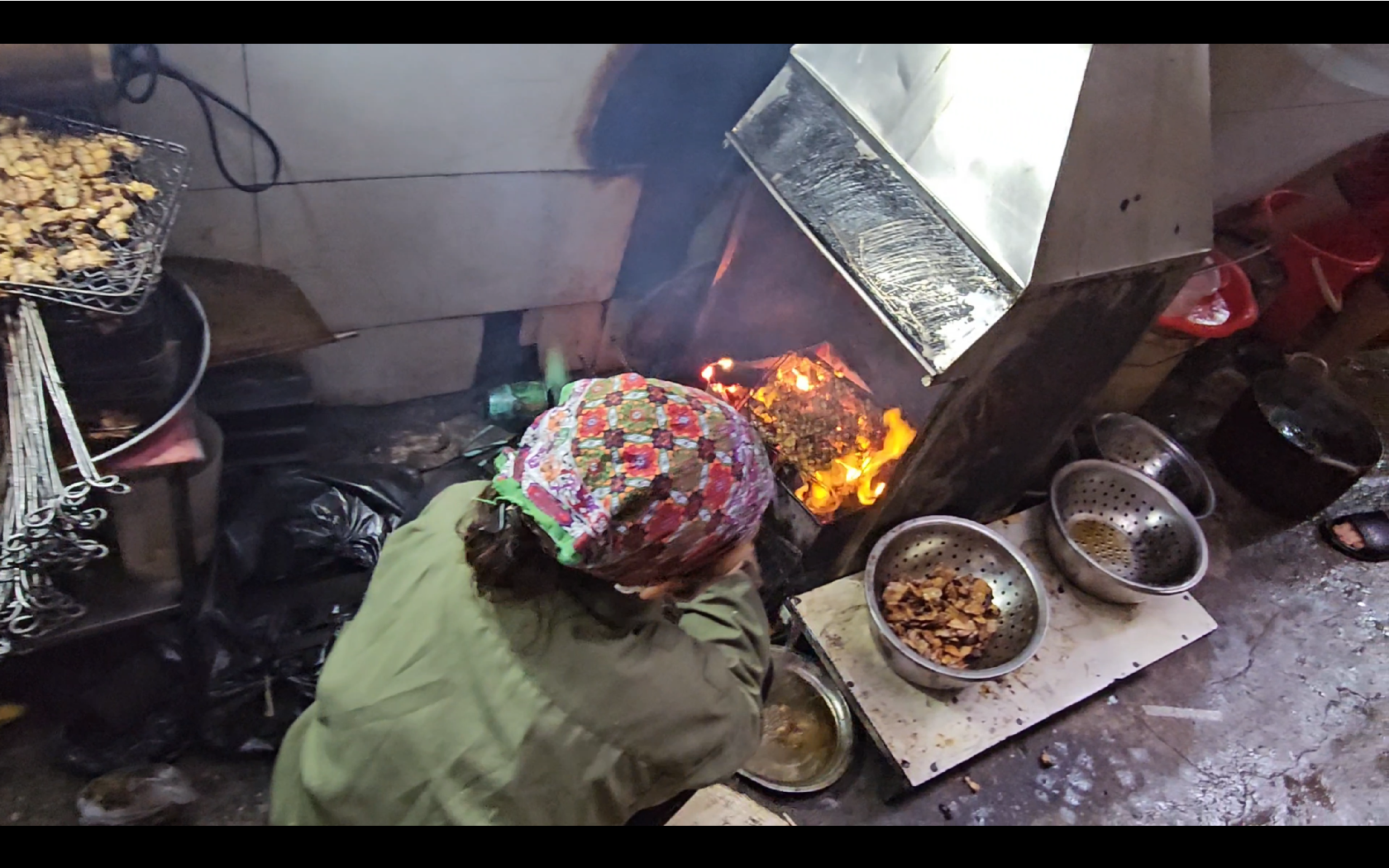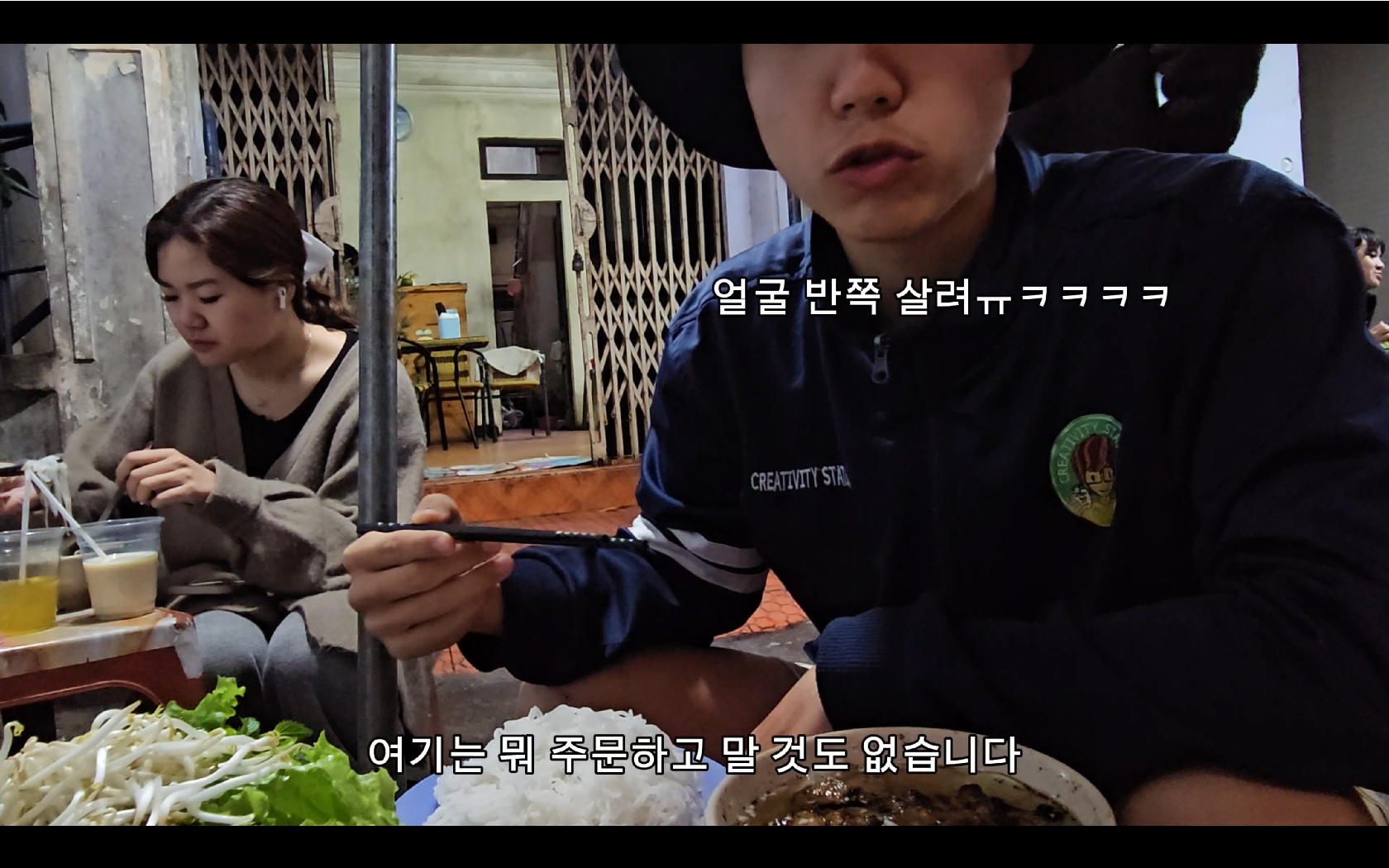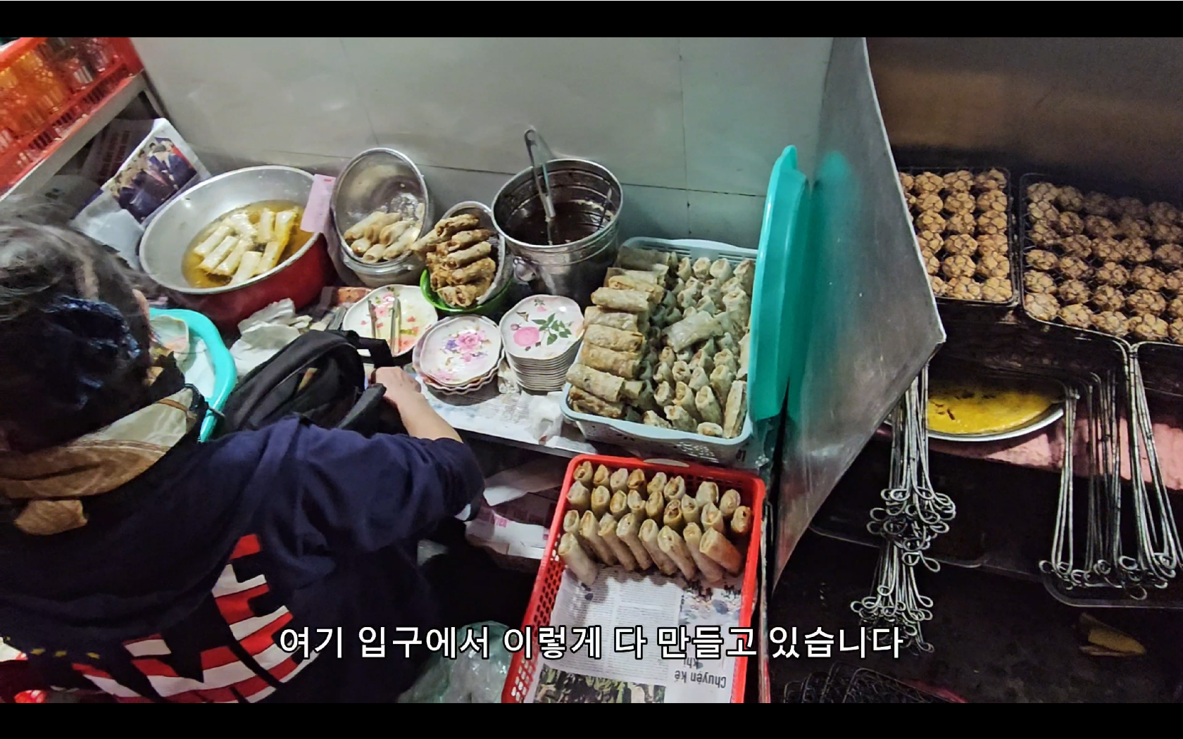 들어가는 골목에서 분짜에 들어가는 고기와 사이드 메뉴인 춘권?을 만드는 모습이 보인다. 이때부터 냄새때문에 식욕이 더욱 자극되는 느낌이었다.