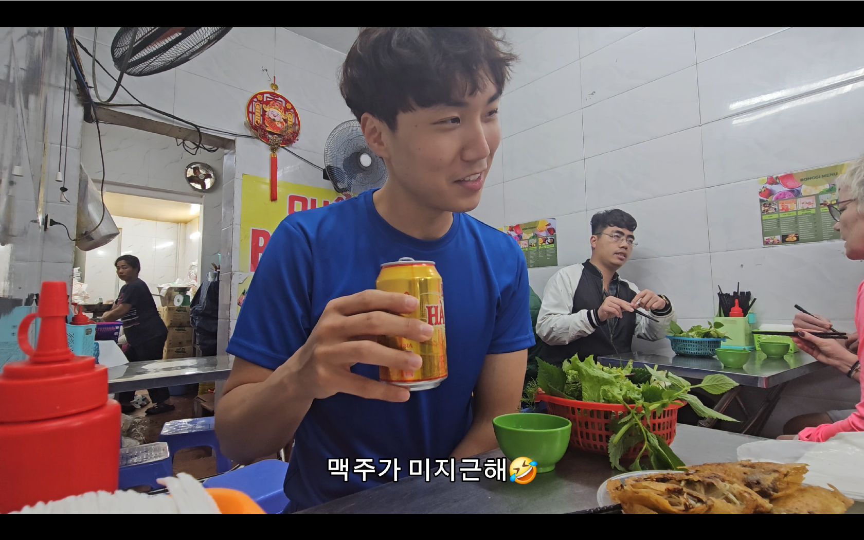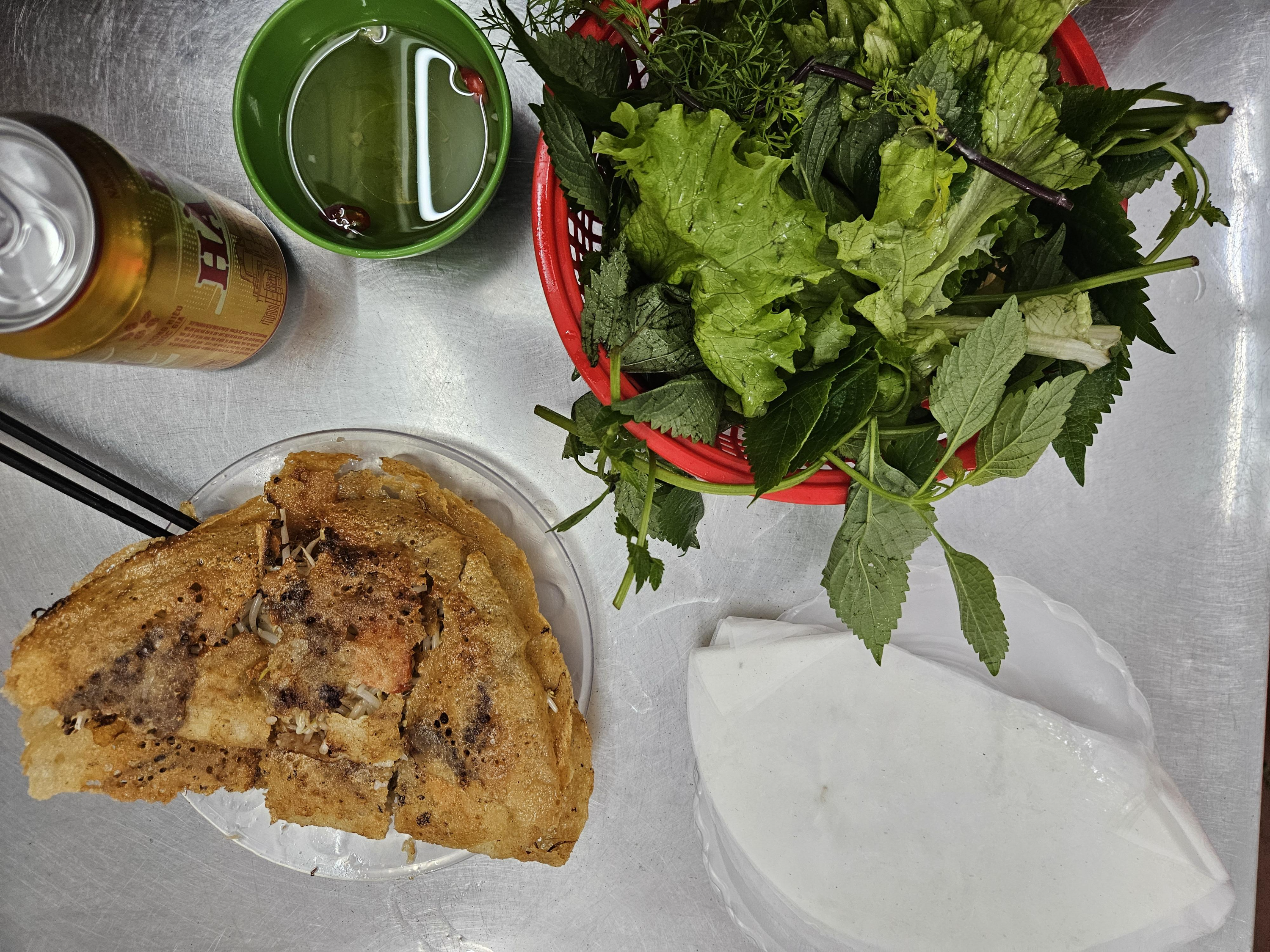 이런 모습으로 나온다. 반쎄오 외에도 다른것도 있는것 같다. 난 반쎄오랑 맥주만 시켰다. 튀김요리에 맥주는 못참지ㅋㅋㅋㅋ