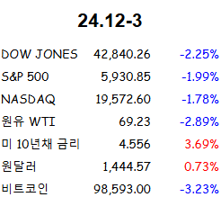 미국 연준이 12월 기준금리를 0.25bp 내림. 그러나 강한 경제상황과 더디게 하락하는 물가를 이유로 25년 금리인하 횟수를 4회서에서 2회로 축소하며 매파적인 모습 보임. 미국 연 경제 성장률은 3.1%상승으로 강한 모습 보임.