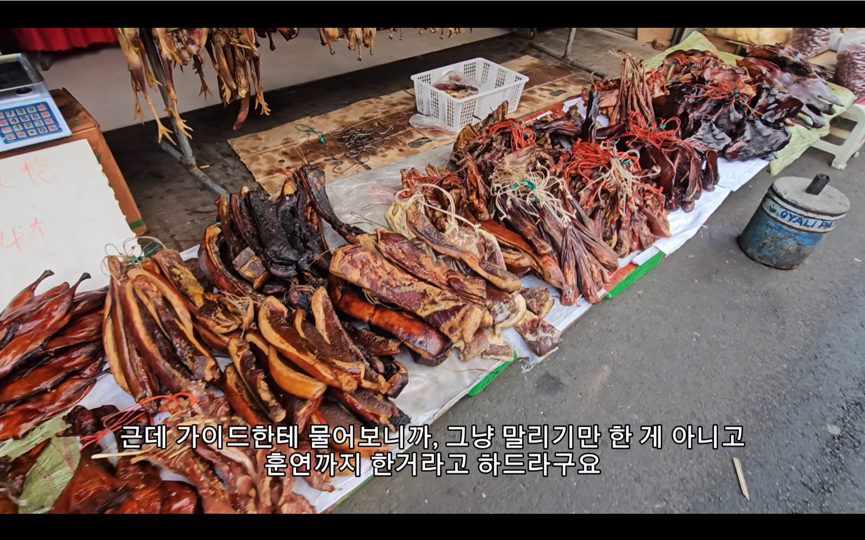 시장에 판매하는 모든 식품은 당일 도축한 녀석들만 사용한다고한다. 하루가 지나면 모두 다른 마트 같은곳으로 납품하여 시장에서 사는 식자재가 가장 신선하다고 한다. 그리고 스촨에서만 구할 수있는 뿌리식물?을 보았는데, 이전에 식당에서 먹어봤던 것이었다. 맛과 향이 너무 독특하고 강해서 삼키지 못하고 입 밖으로 꺼냈던 기억이 났다. 앵간하면 난 가리는 음식 없이 잘 먹는데, 저 녀석은 너무 강했다ㅋㅋㅋㅋ