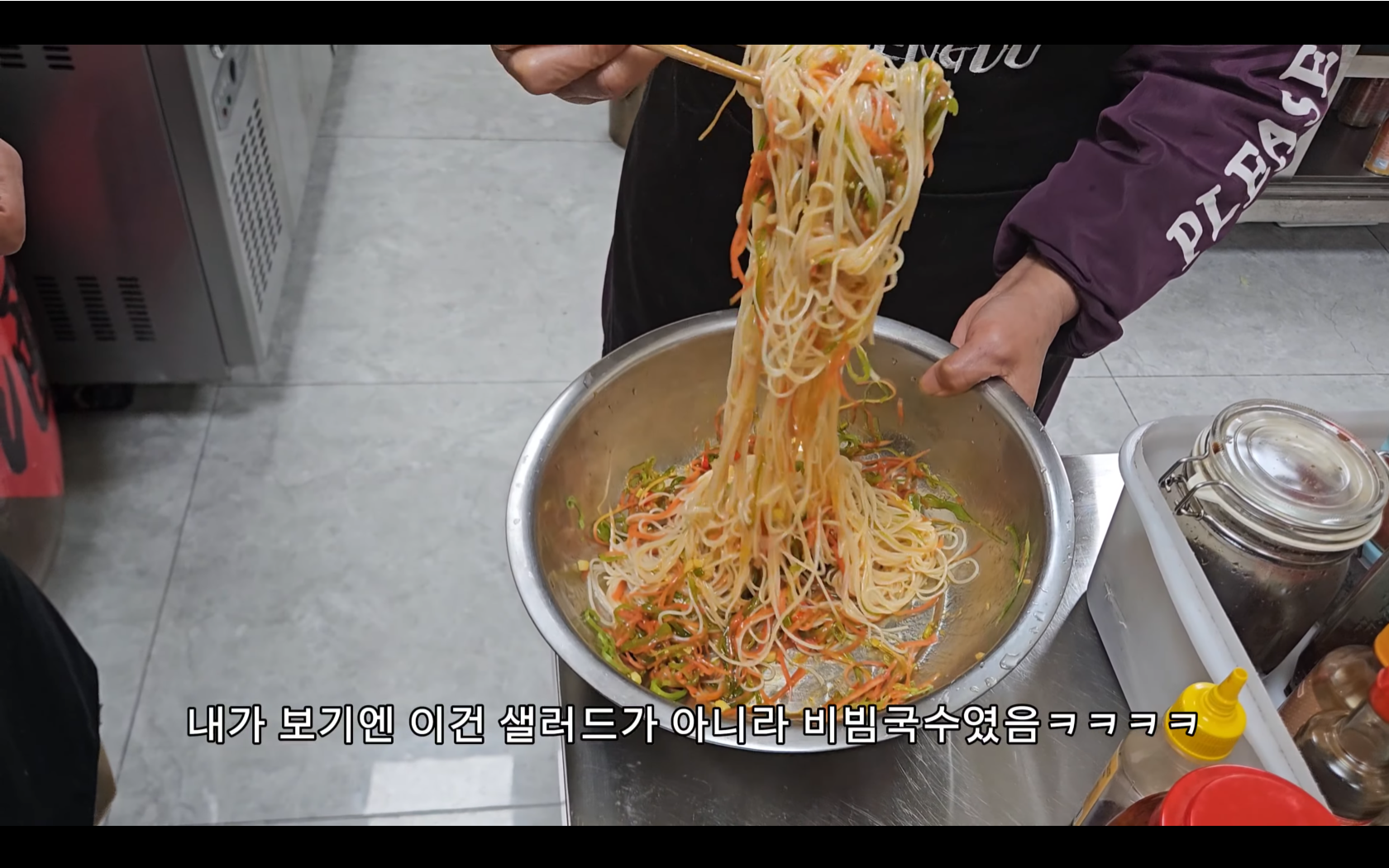 5가지 요리중에 정말 이해가 되지 않았던것이 중국식 샐러드였다. 내가 보기엔 이건 샐러드라고 부를 수 없다. 사진을보면 완전 비빔 국수 아닌가? 샐러드치곤 면이 너무나도 많은 것 같다. 맛은 고소하고 짭잘한 비빔국수였다.