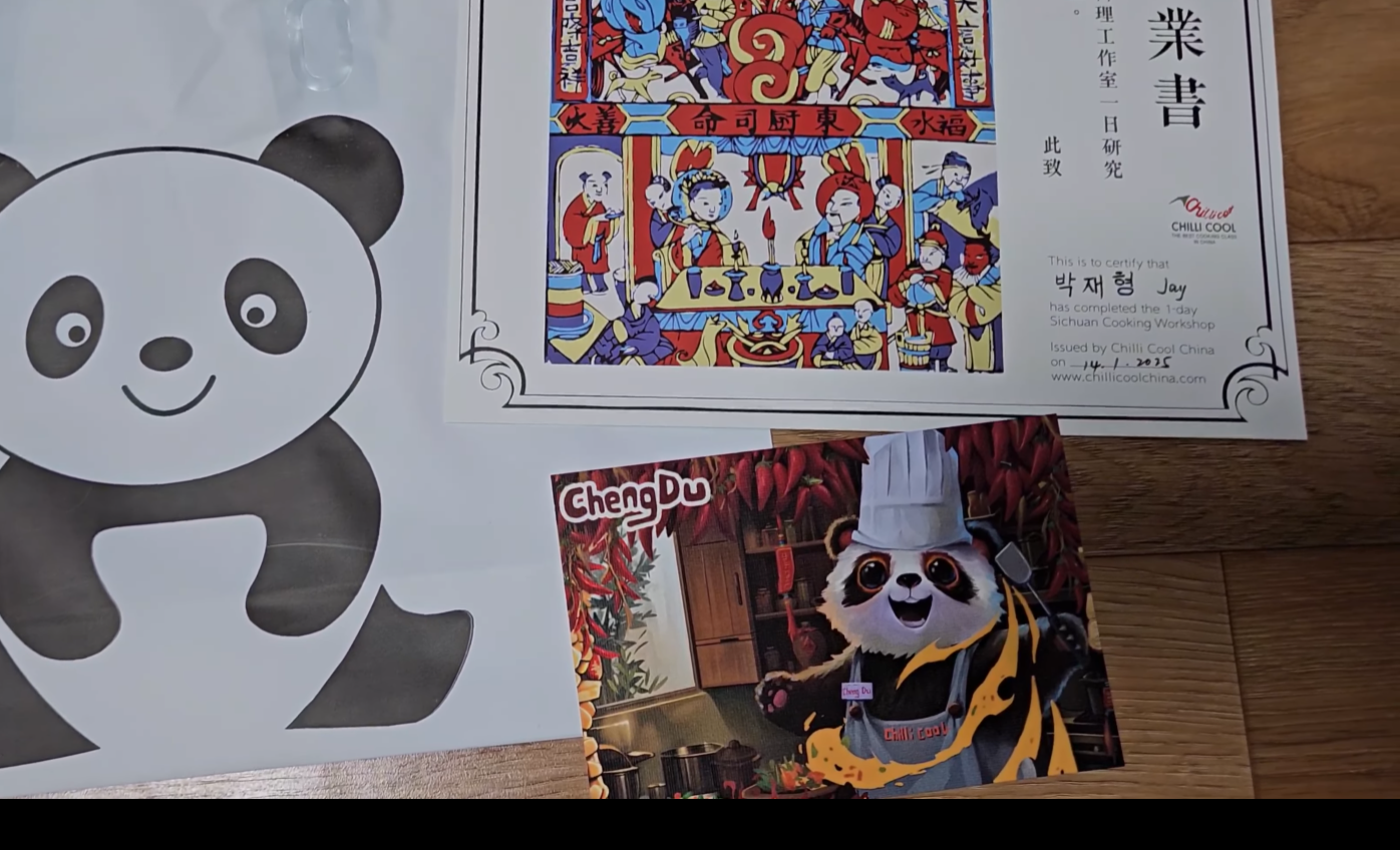 클라스가 끝나면 수료증이랑 팬더 엽서, 팬더 젓가랏받침대를 기념품으로 준다ㅋ