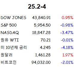 미국 관세 충격으로 인플레 우려와 소비심리 악화 빅테크 성장 둔화가 겹치며 미국 증시가 힘을 못내는 상황.