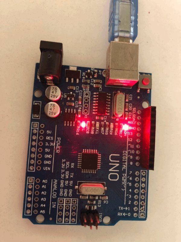 아두이노를 확인해보면 위와같이 L 이 적혀있는 LED가 깜박거리는것을 확인할 수 있습니다.