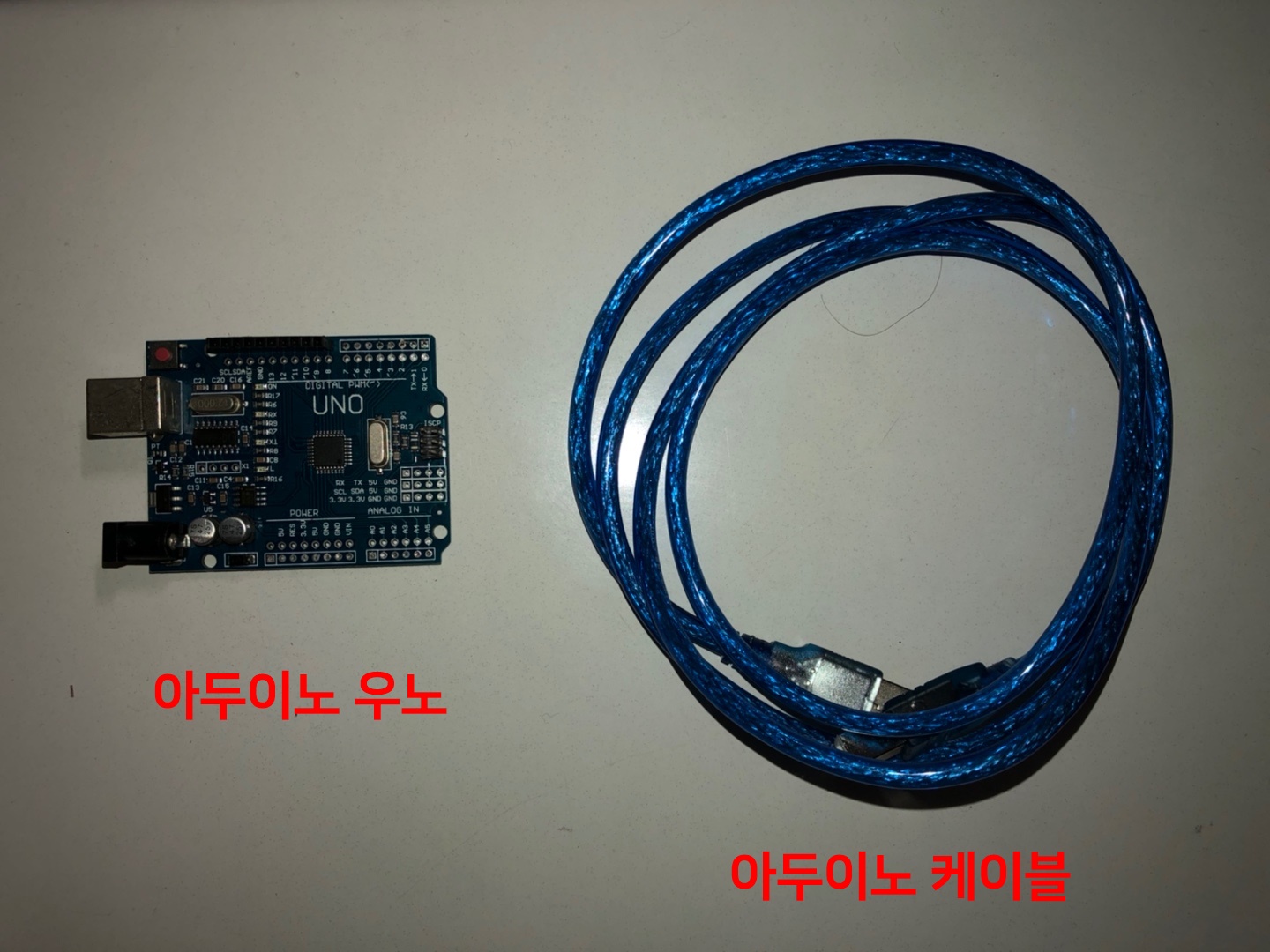 저는 아두이노 우노 ( UNO ) 를 준비했고 시리얼 통신을 위한 케이블선도 필요합니다.