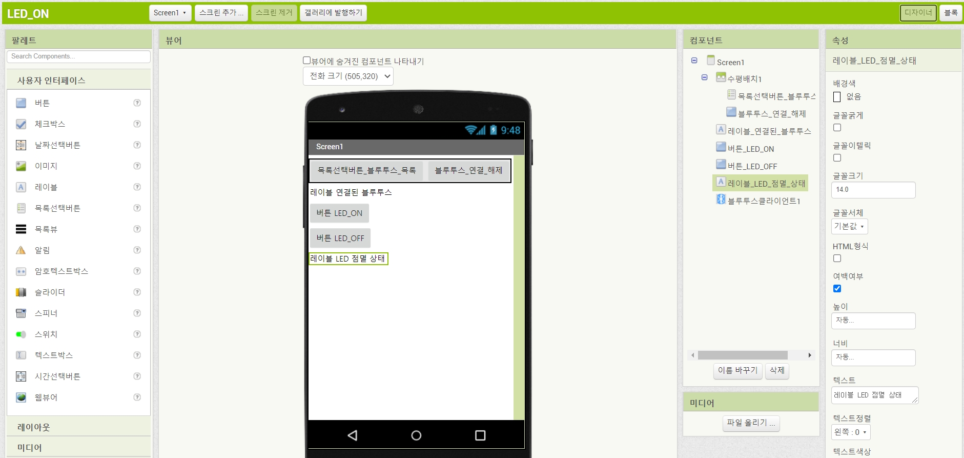 앱 인벤터에서 제작한 어플리케이션 블록도 및 디자인입니다.
