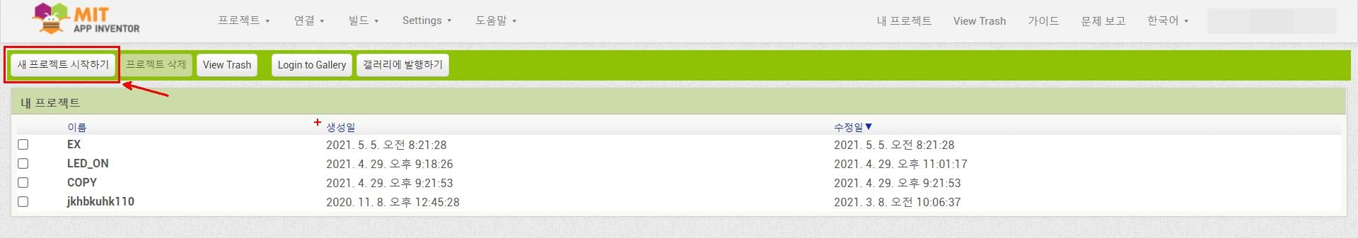 로그인을 완료했다면 위 창으로 이동할 것입니다. 여기서 '새 프로젝트 시작하기'를 클릭해주세요.